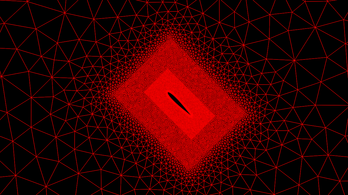 The slideshow below displays the grid at various angles. For RBM, all the grid points rotate about the midchord. The RBM grid is shown in red. For grid deformation, the airfoil surface rotates while the outer boundary remains fixed. The interior grid then must deform. The deformed grid is displayed in green.